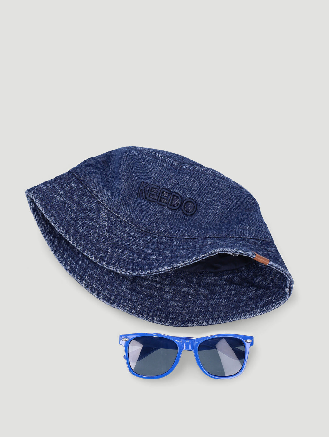 Embroidered Denim Bucket Hat & Sunglasses Set