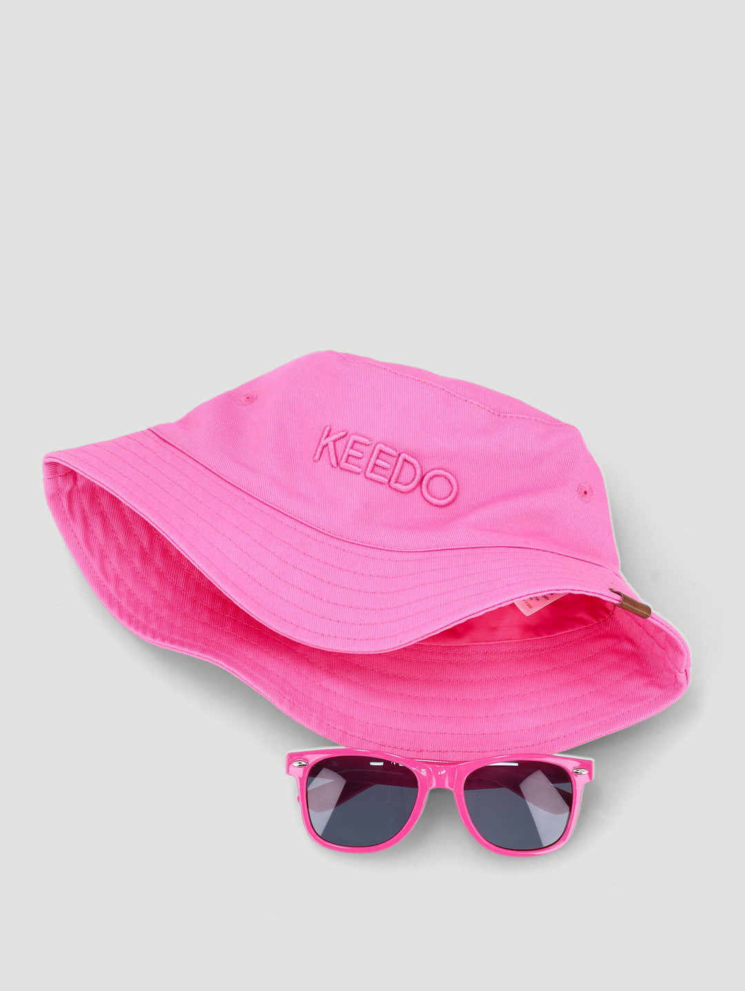 Embroidered Pink Bucket Hat & Sunglasses Set