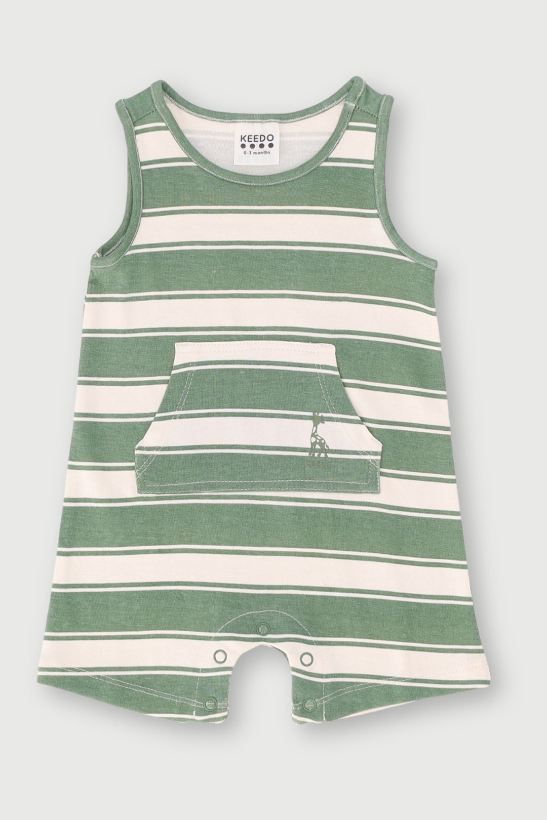 Baby Boys Striped Golfer Dungaree Set - Navy