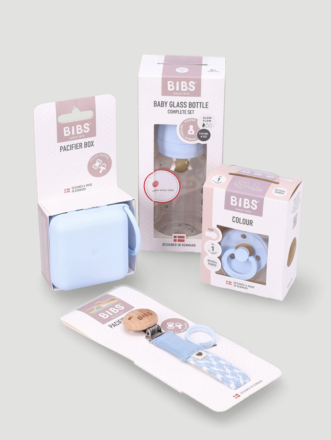 Introducing the Bibs Branded Baby Gift Set, the ultimate baby essentials package! This set includes a durable glass baby bottle, a soothing silicone baby dummy, a convenient dummy clip, and a handy silicone storage box for a dummy. Give the gift of practicality and peace of mind to new parents with this must-have set. The bottle is designed with the childβs needs in mind and is made of borosilicate glass, which is temperature- and thermal shock-resistant, durable, and much more.