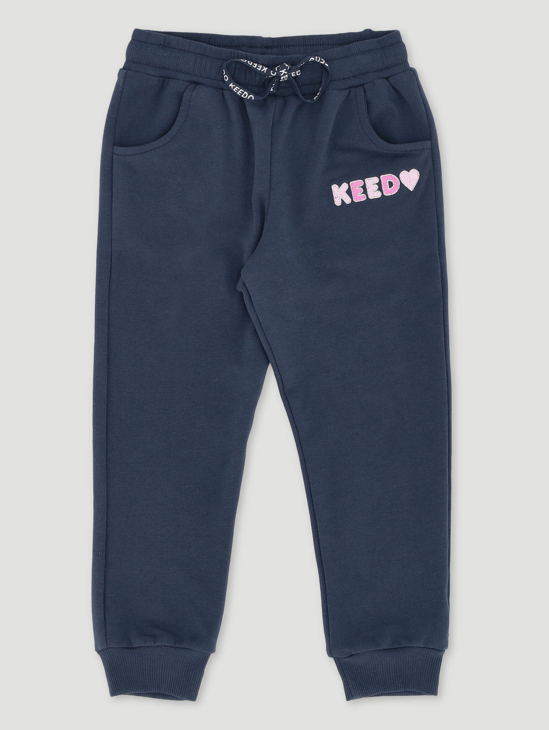 Girls Navy Heart Logo Embroidered Fleece Jogger