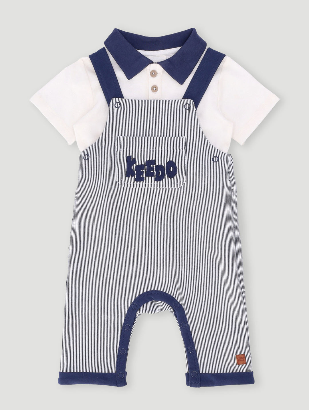Baby Boys Striped Golfer Dungaree Set - Navy