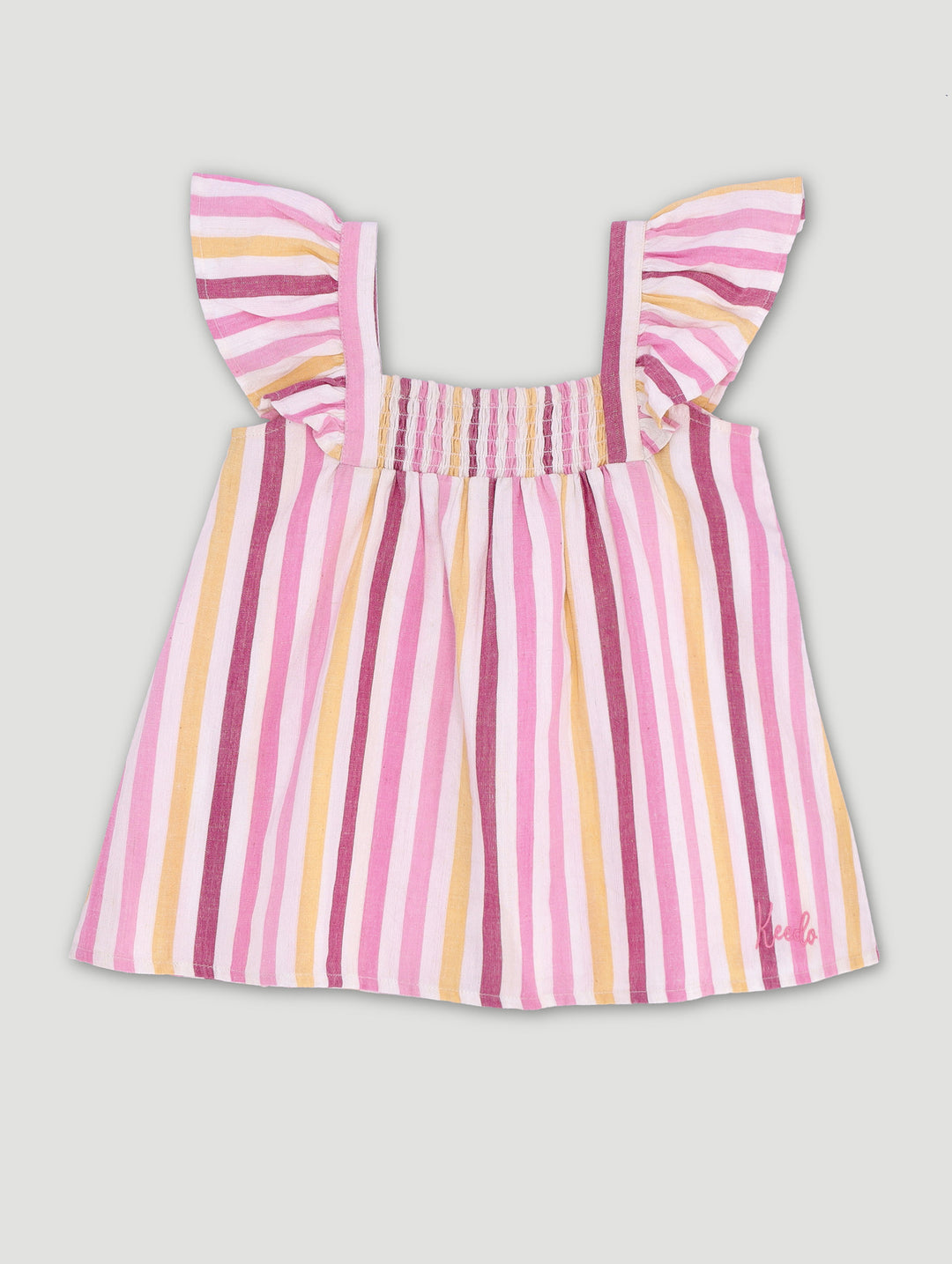 Elevate your girl's wardrobe with our Girls Stripe Fashion Woven Top! Made with high-quality materials, this top offers both style and comfort. Its stylish stripes make it perfect for any occasion, from casual outings to special events. Upgrade her look and make her feel confident and stylish in our top!