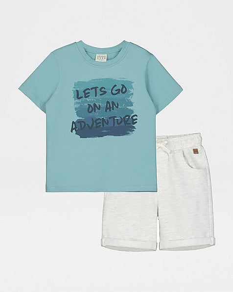 Boys Waffle Tee And Short Set - Teal