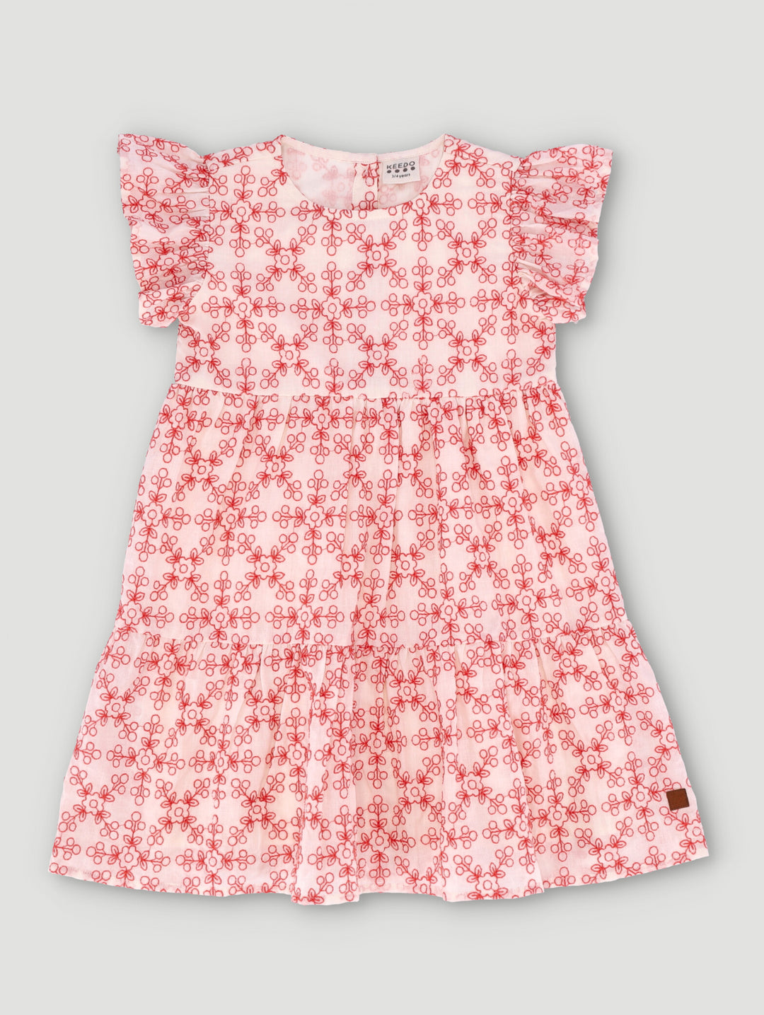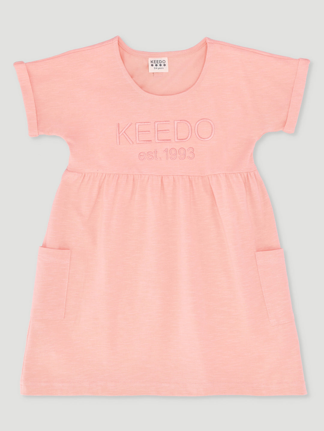 Girls Embroidered Peach Pearl Logo Dress