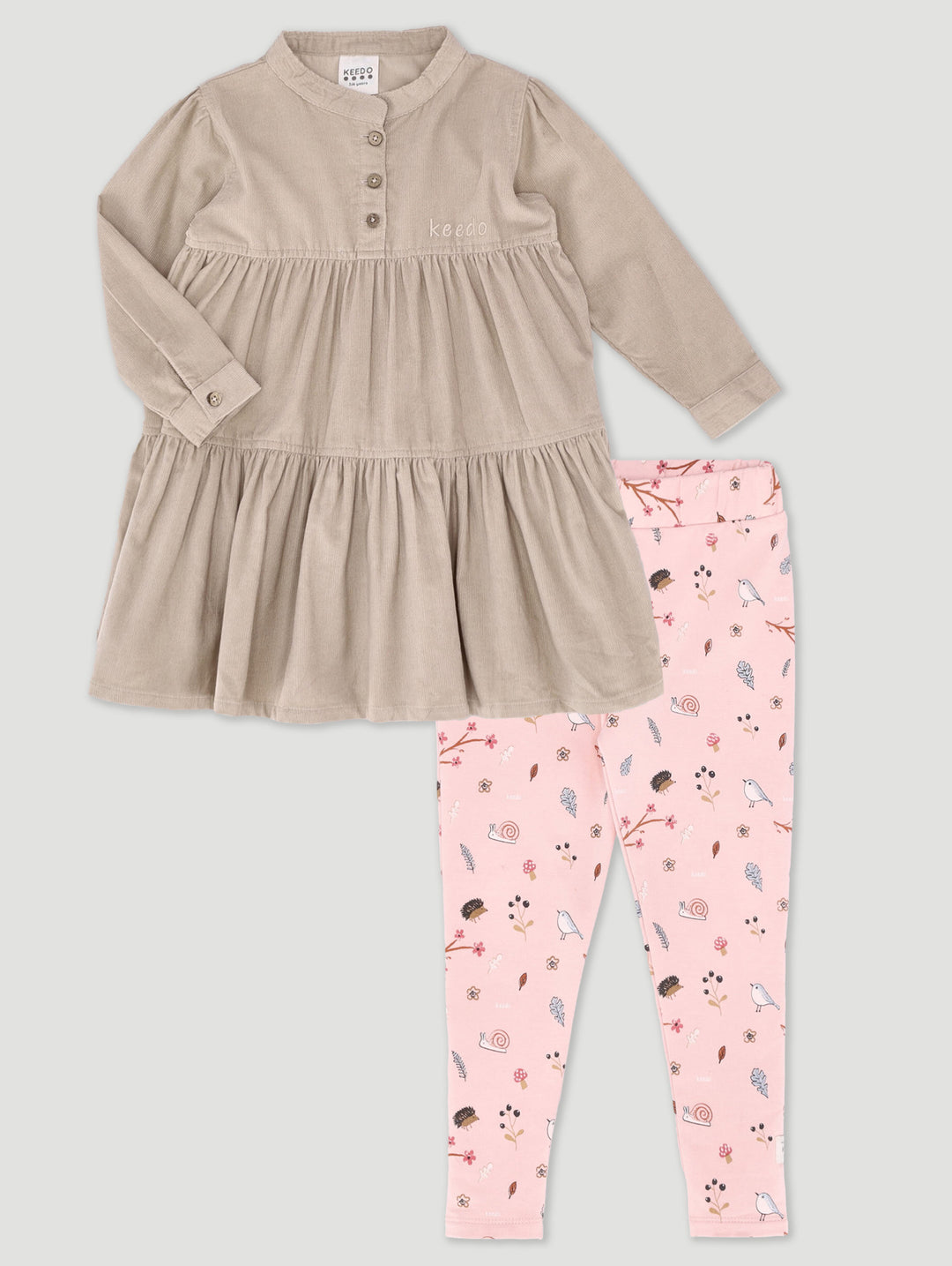 Girls Flora And Fauna Cord Tiered Dress Set