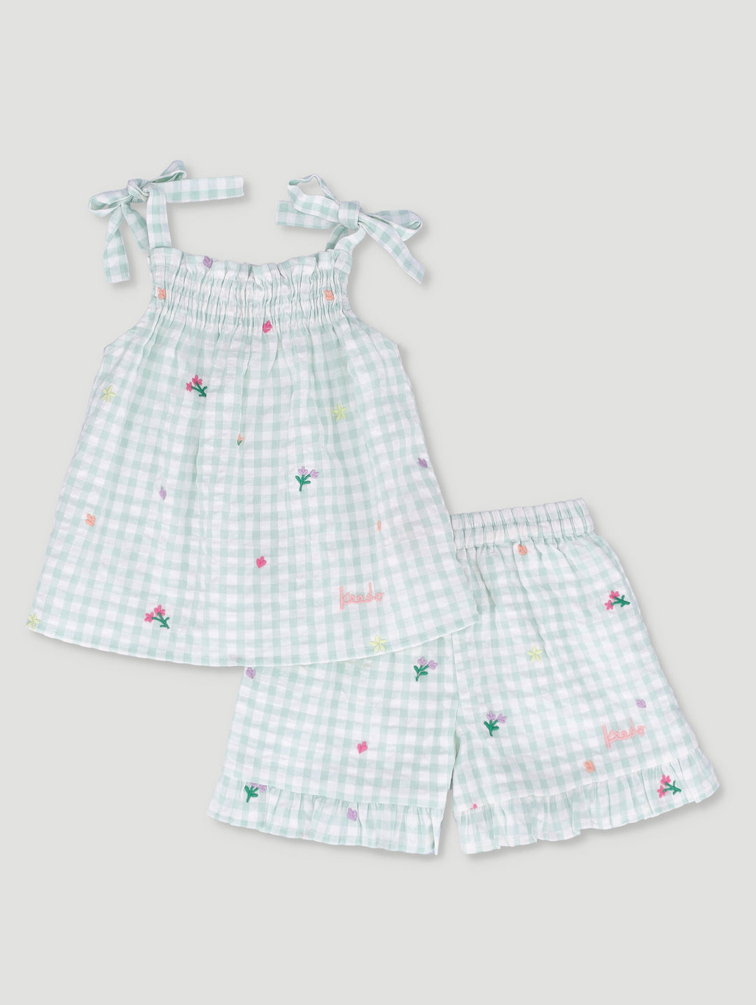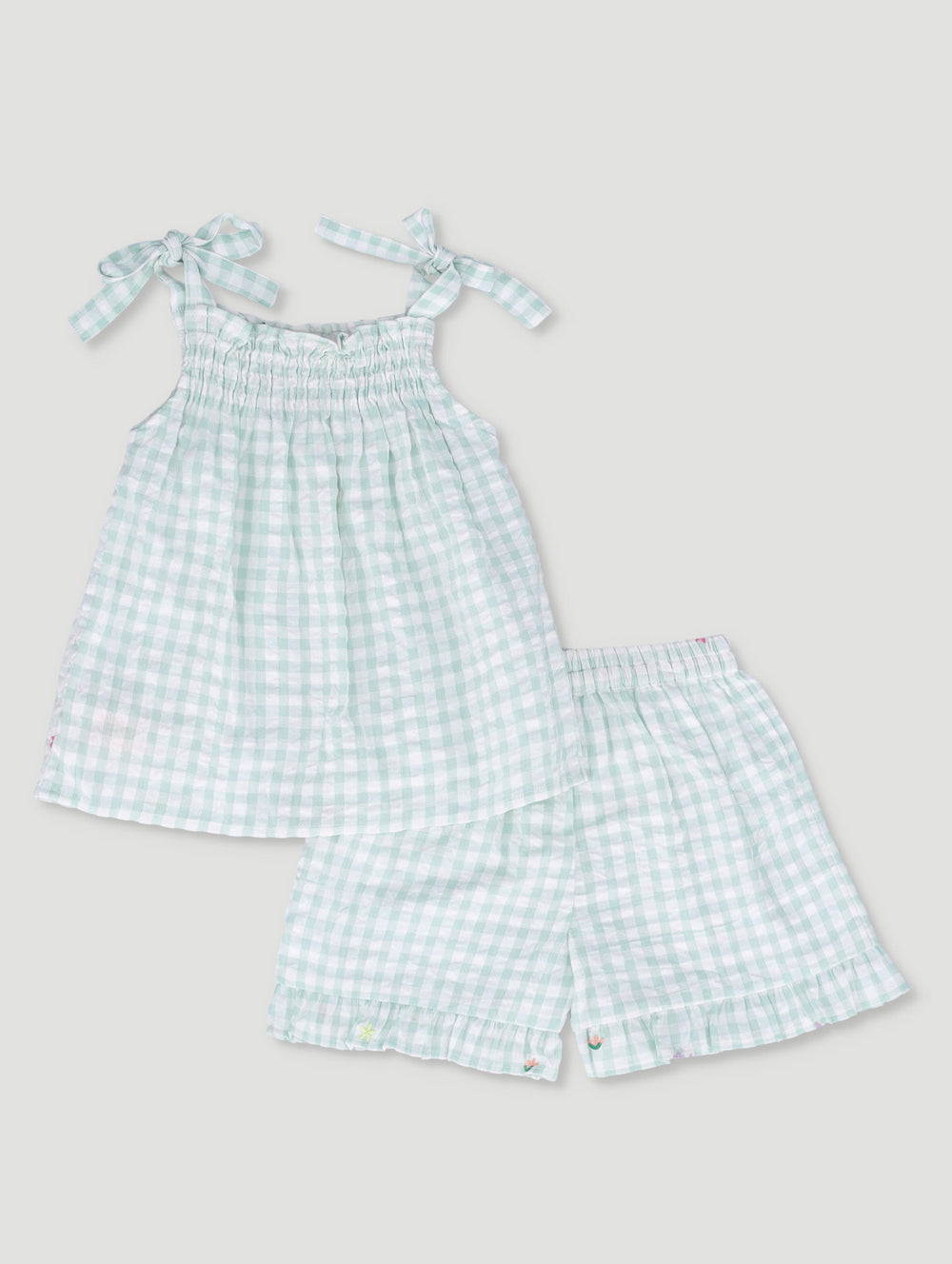 Girls Gingham All Over Print Top And Shorts Set