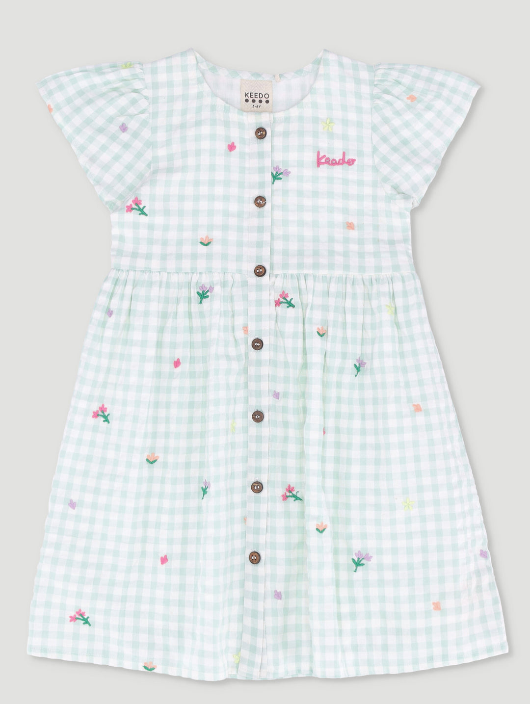 Girls Gingham All Over Print Button Front Dress