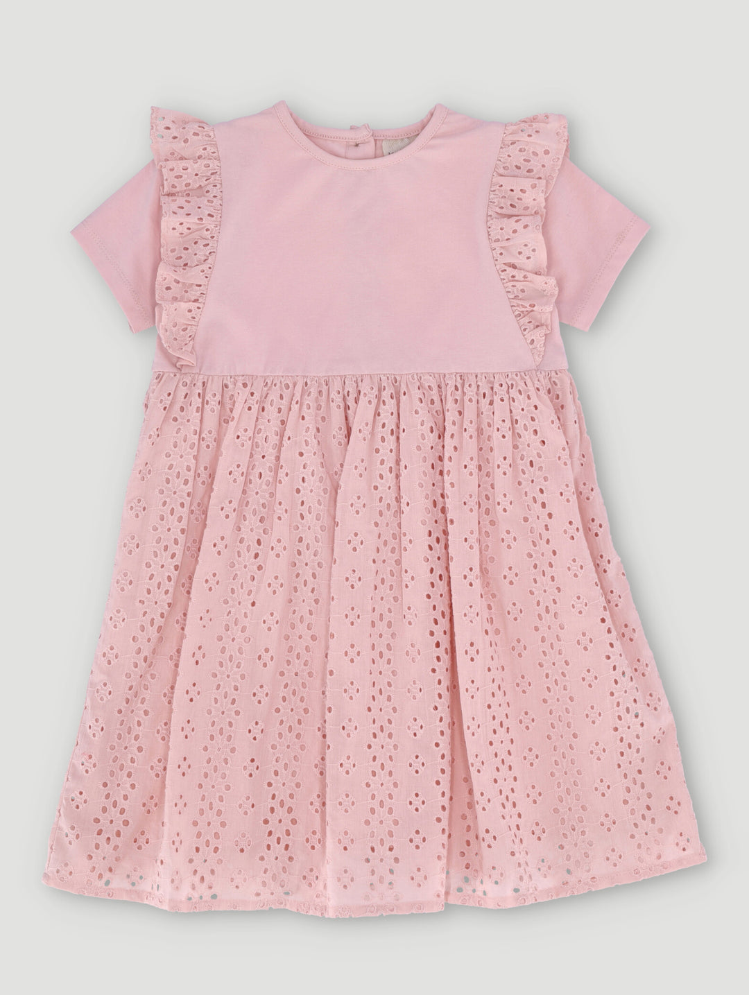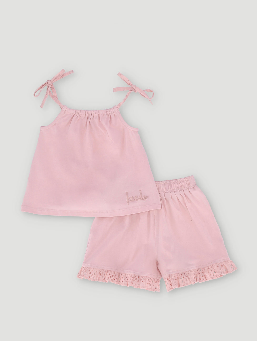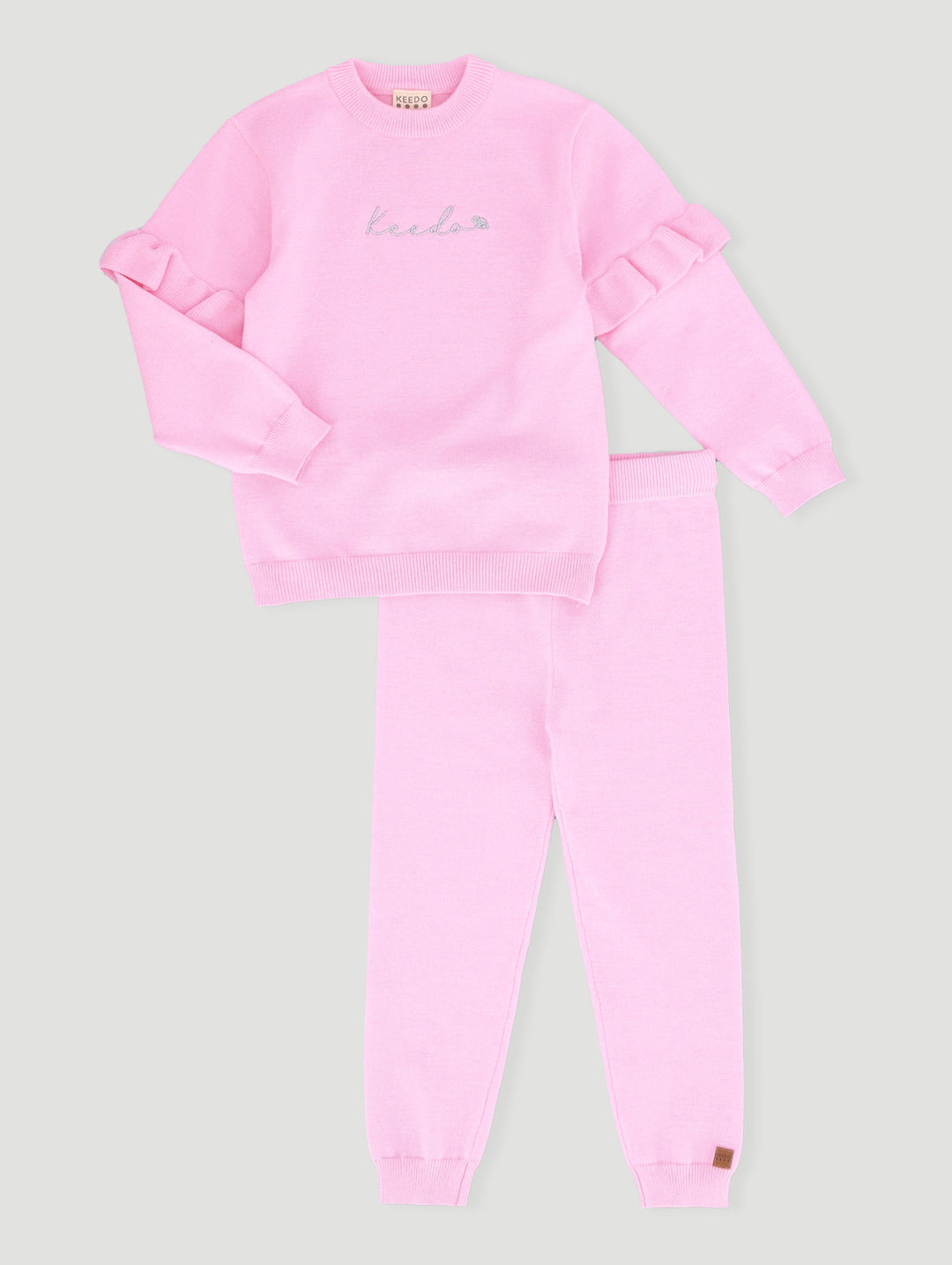 Girls Pink Knit Set With Lurex & Frill Sleeve Details