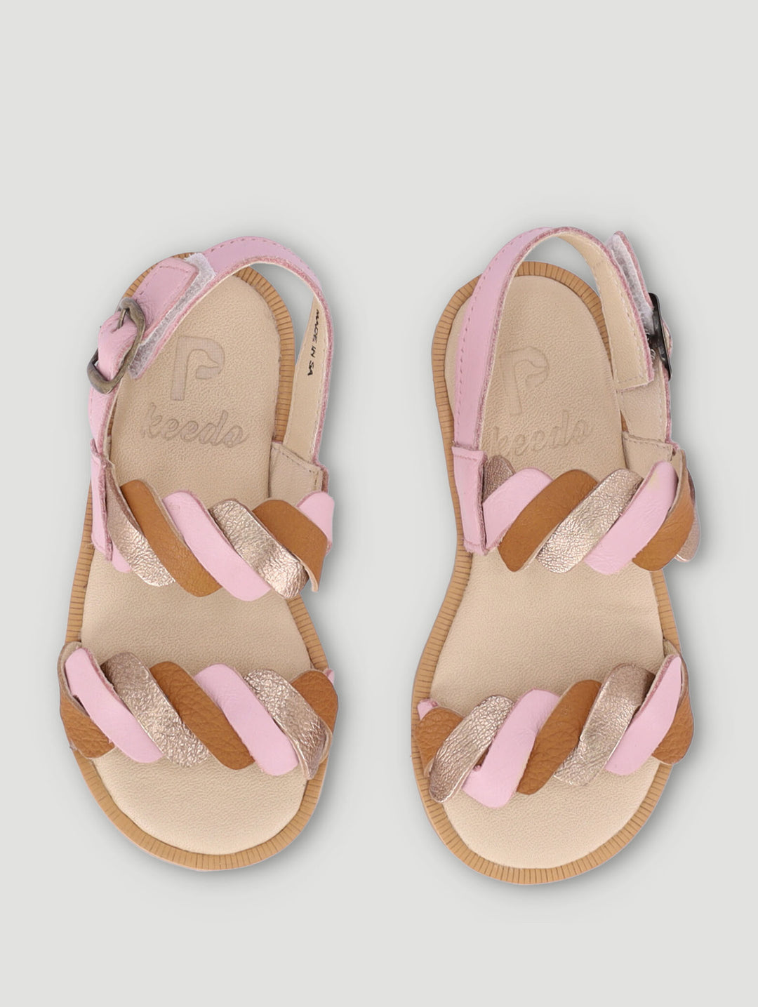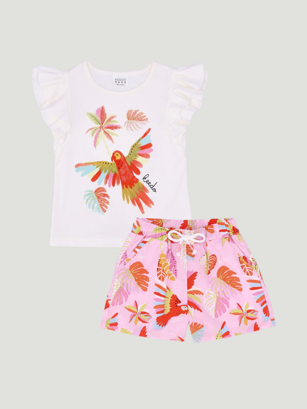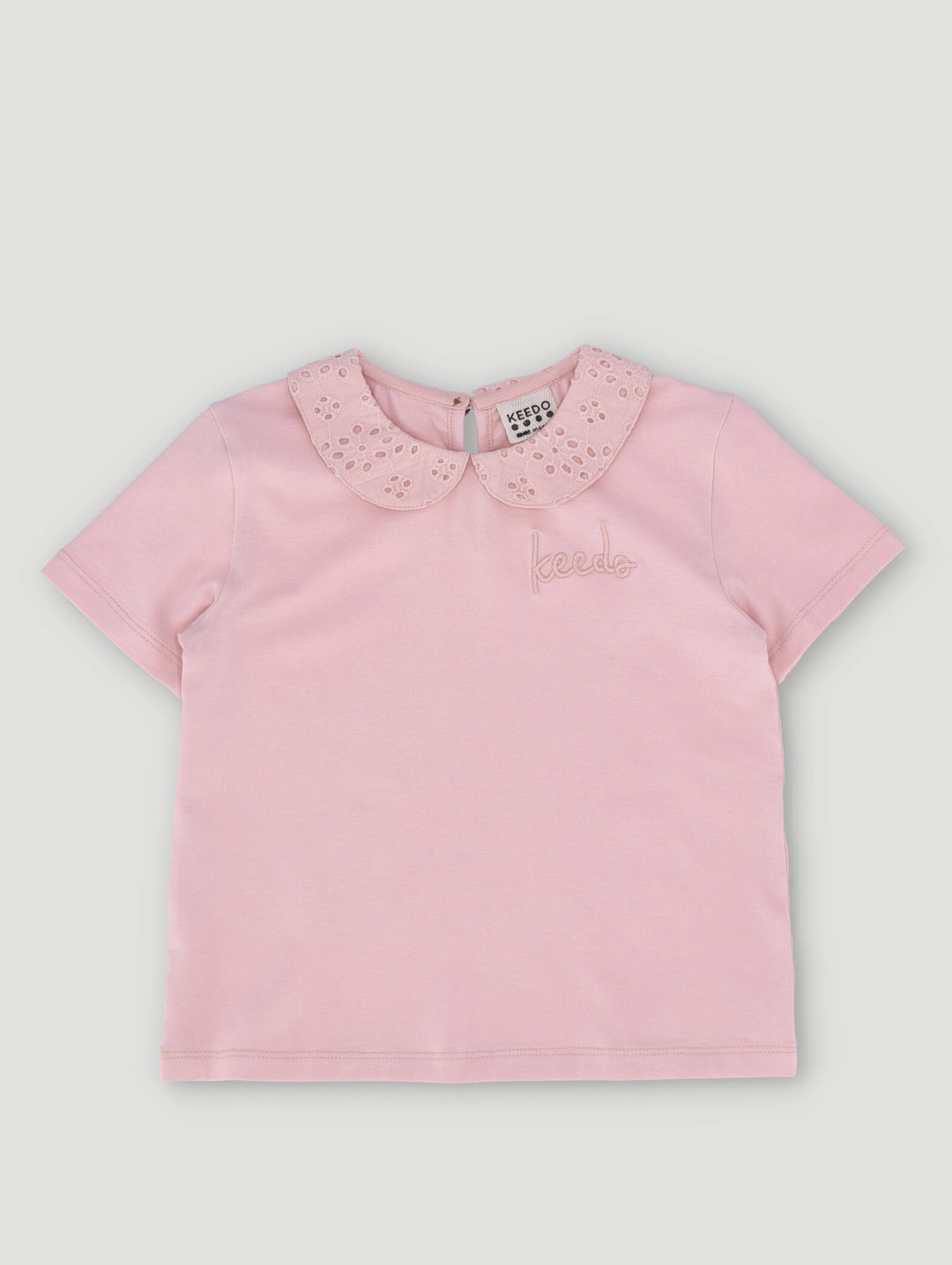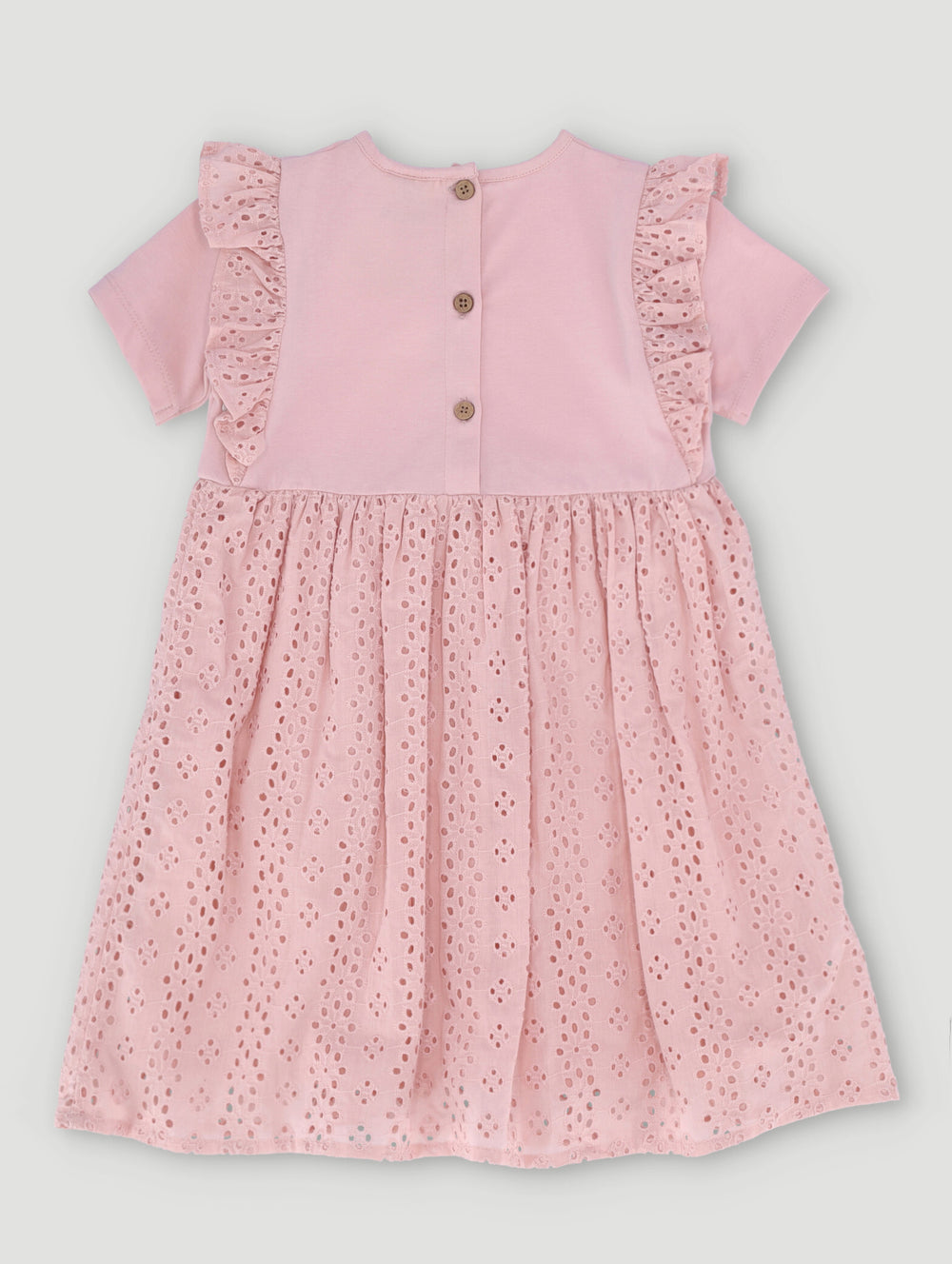 Girls Pink Knit Set With Lurex & Frill Sleeve Details