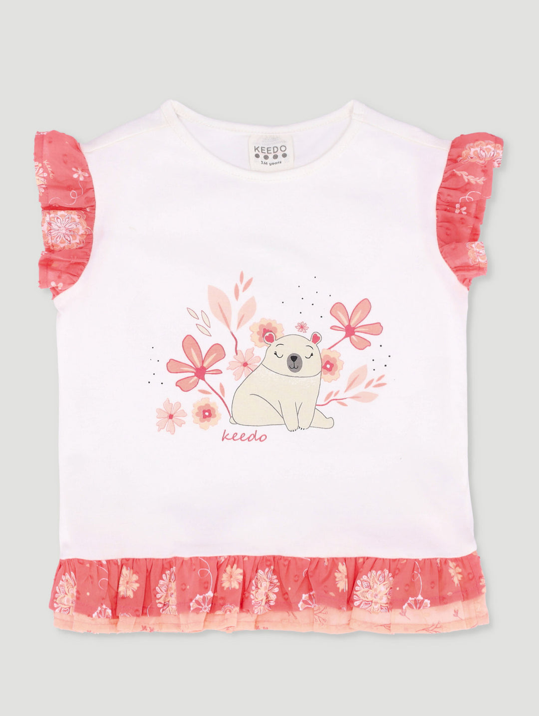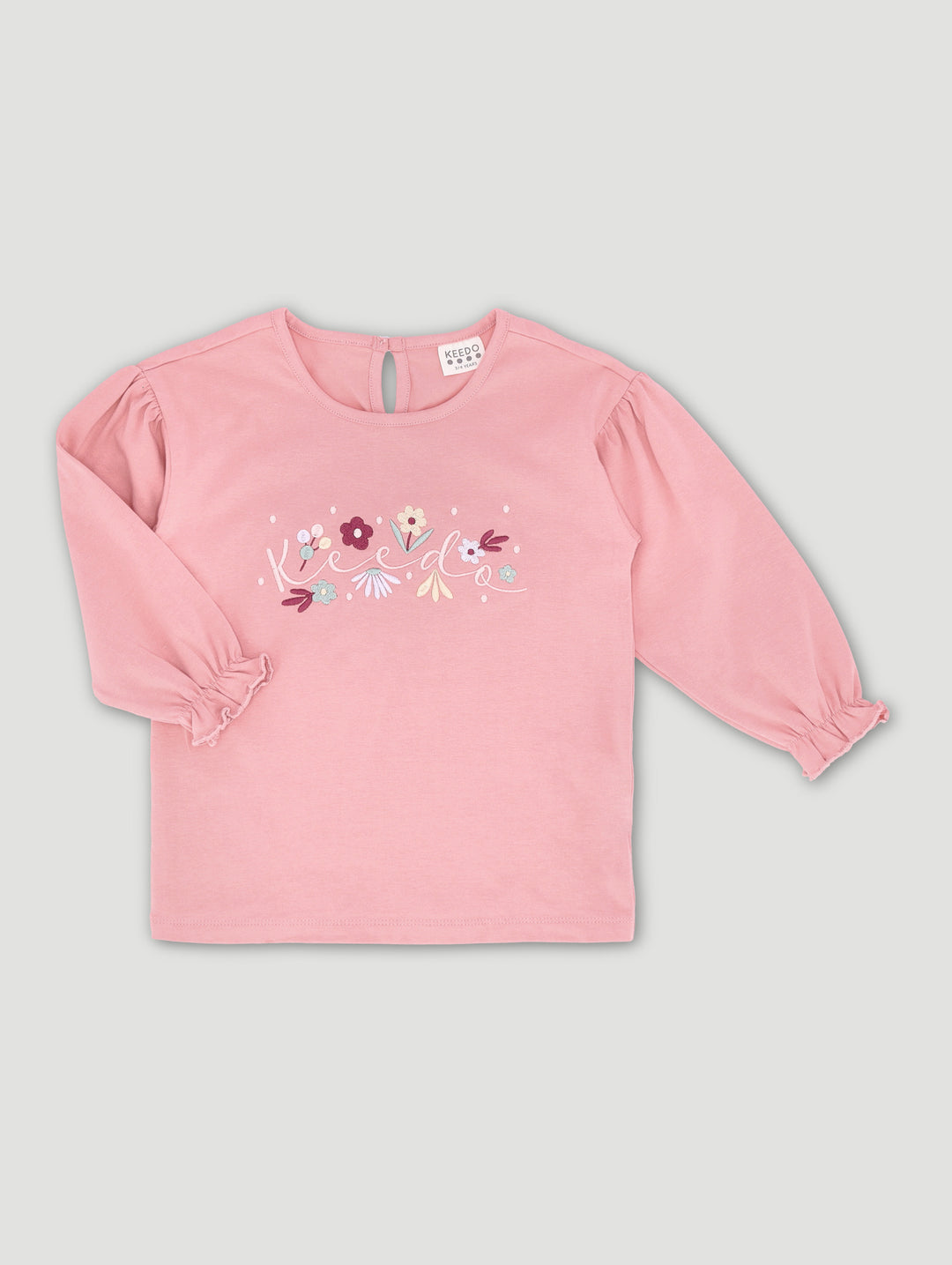 Girls Pink Floral Long Sleeve Cotton Lycra Tee