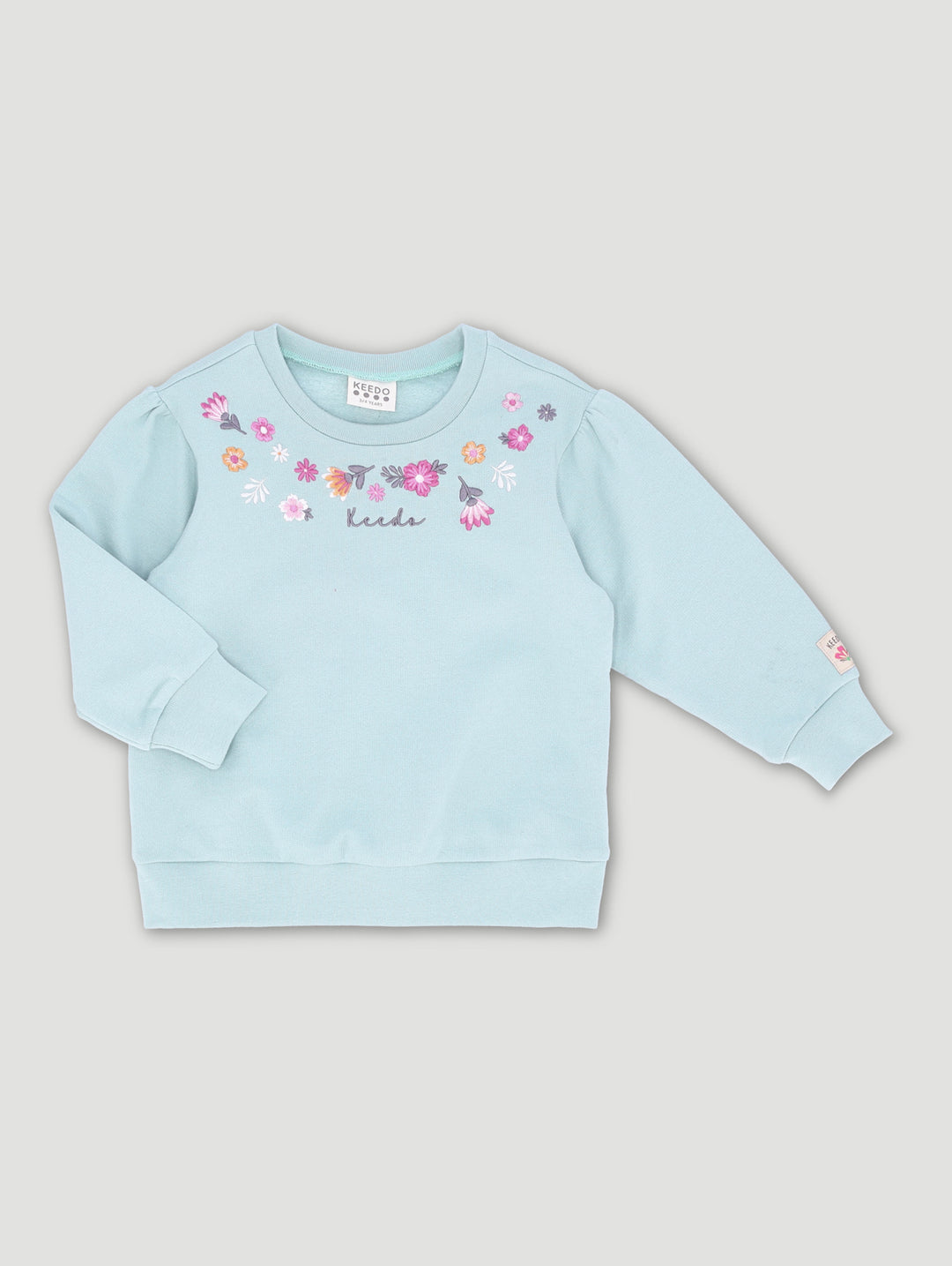 Girls Mint Logo Sweat Top with Embroidered Flower Details