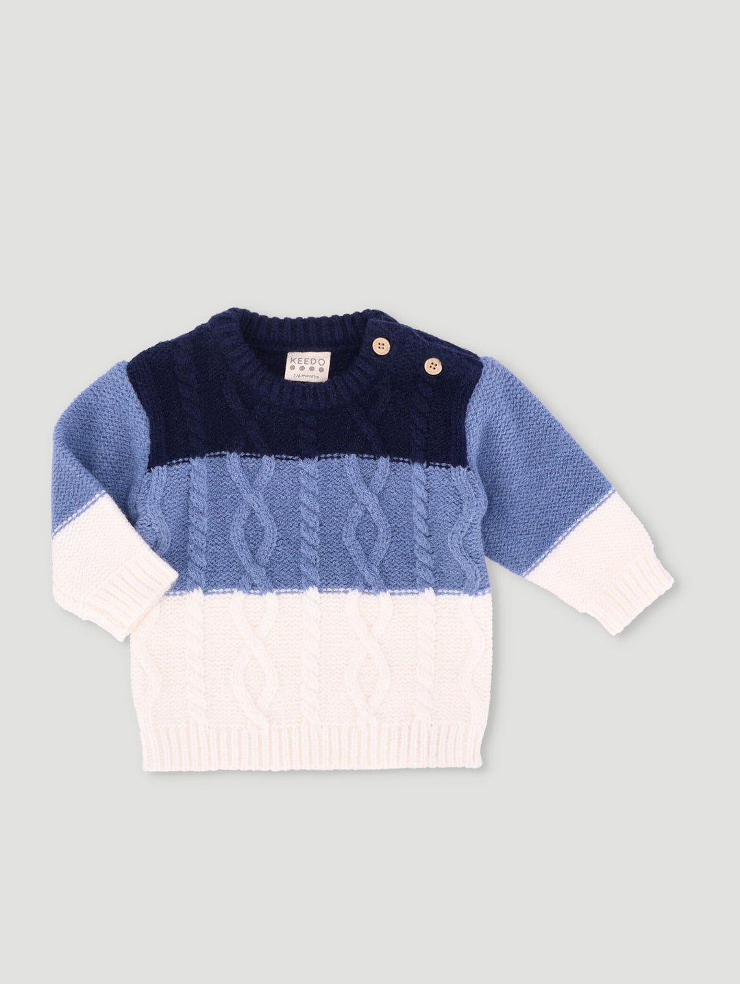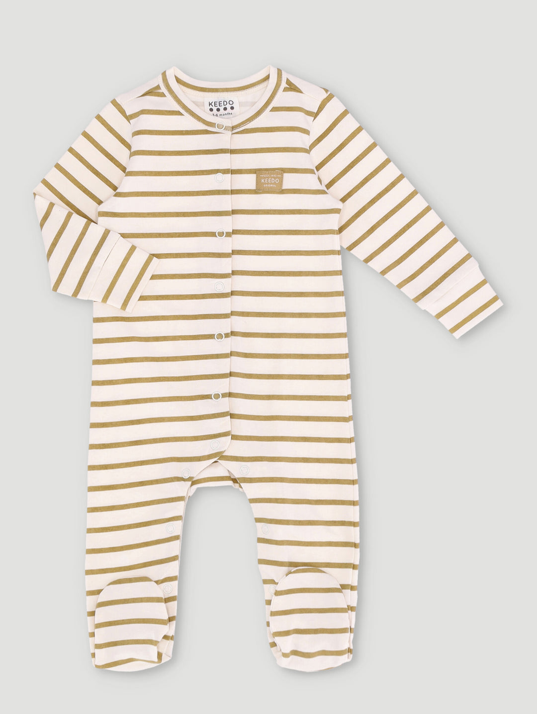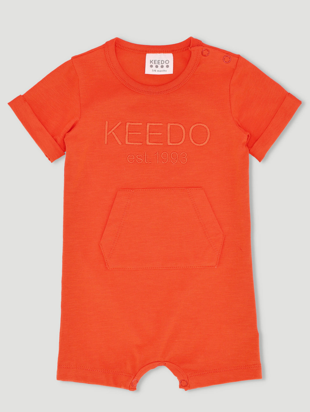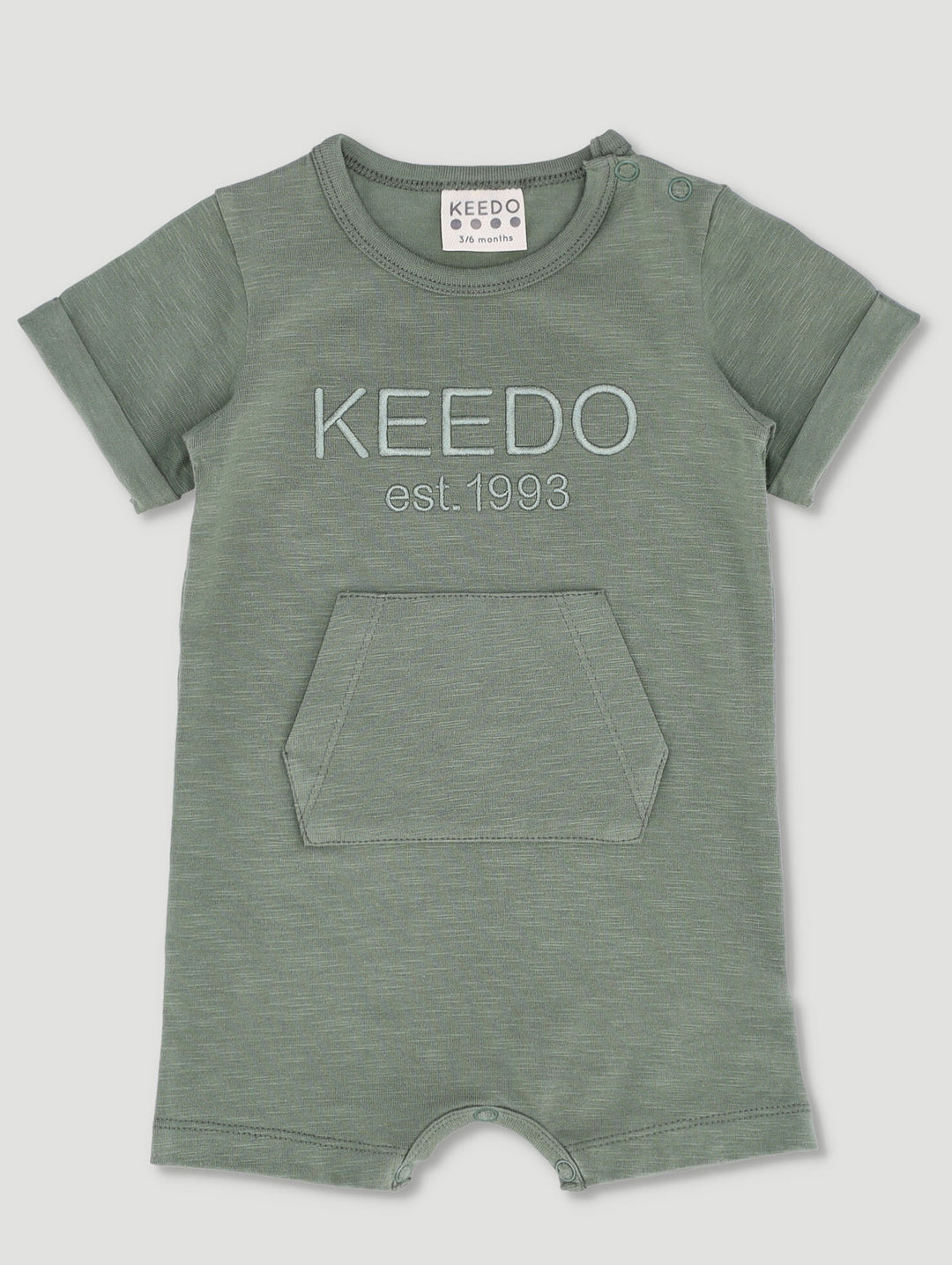 Baby Boys Embroidered Blue Stripe Logo Romper
