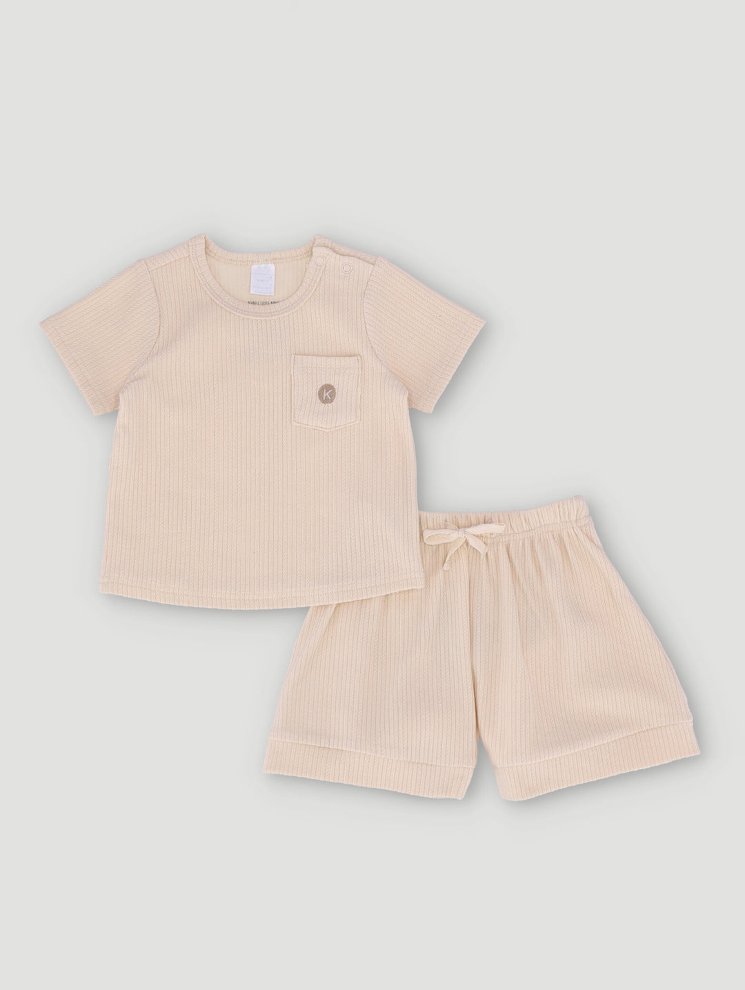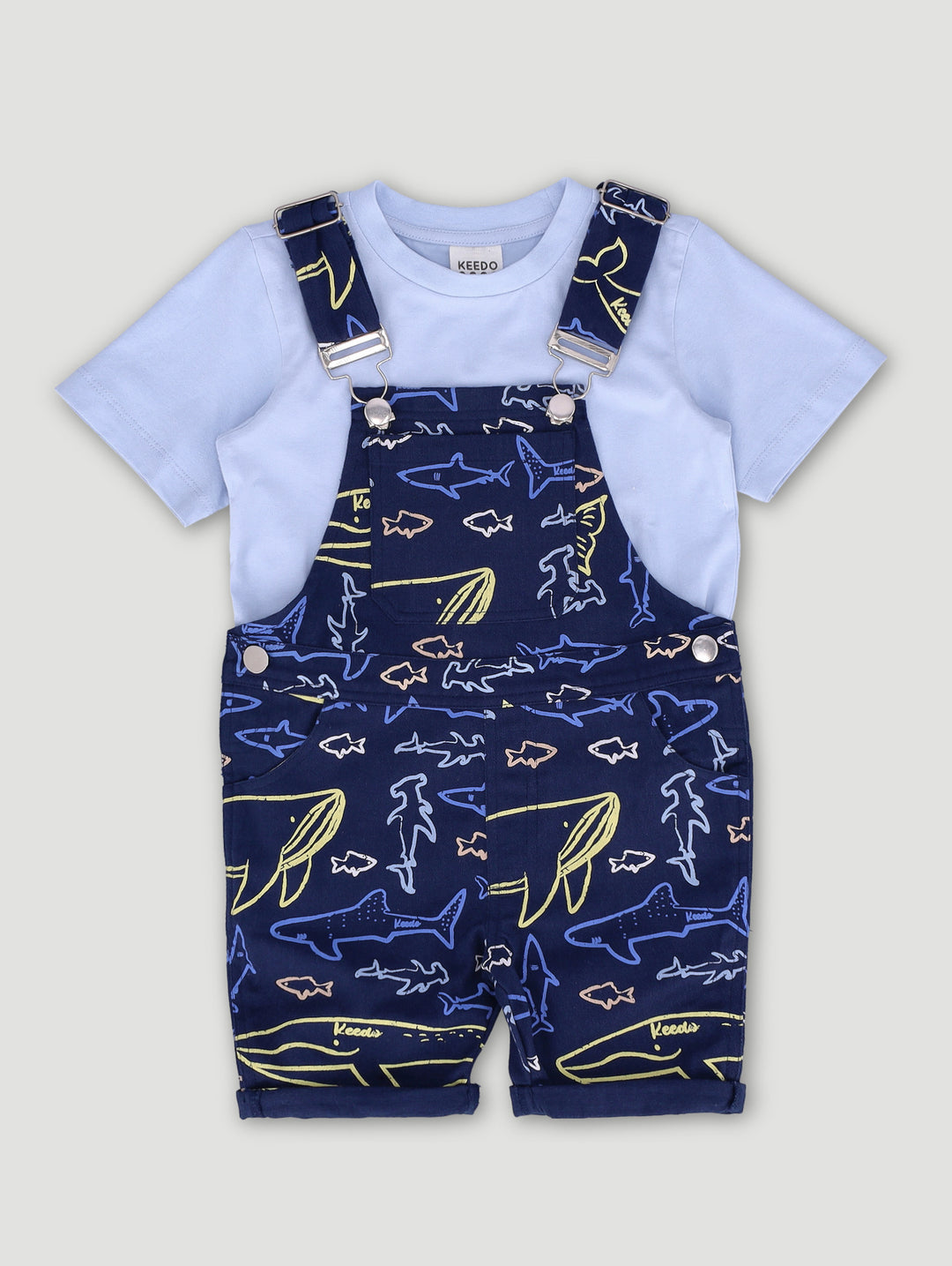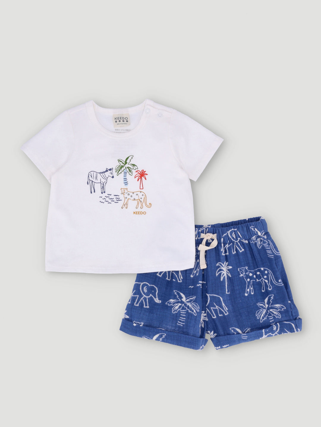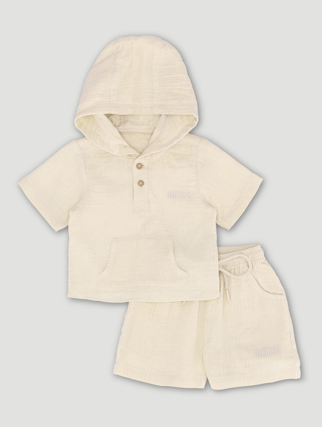 Baby Boys Mid Length Embroidered Brushed Canvas Dungi Set