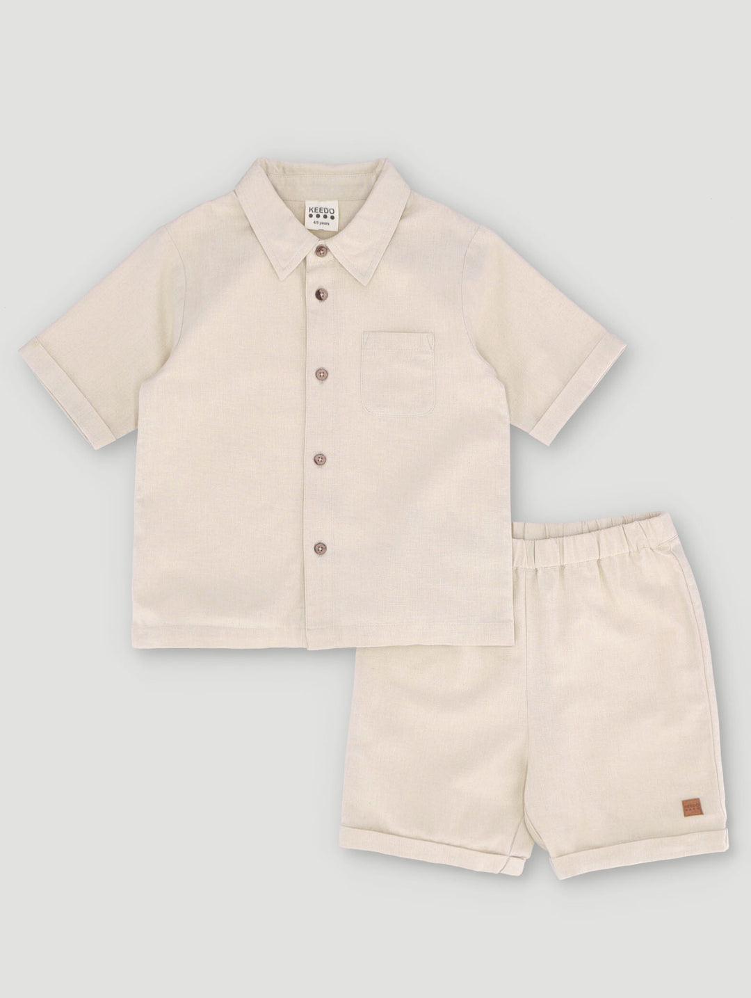 Baby Boys Short Sleeve Foliage Shirt - Mustard