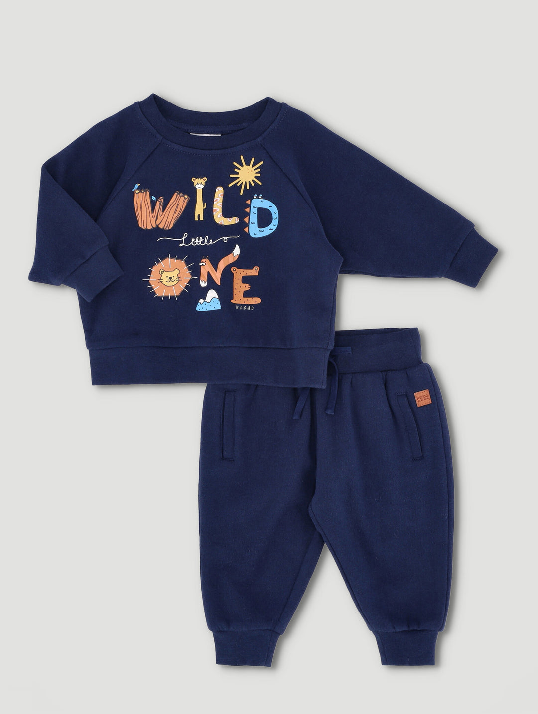 Baby Boys Surfer Embroidered Set - Grey Melange